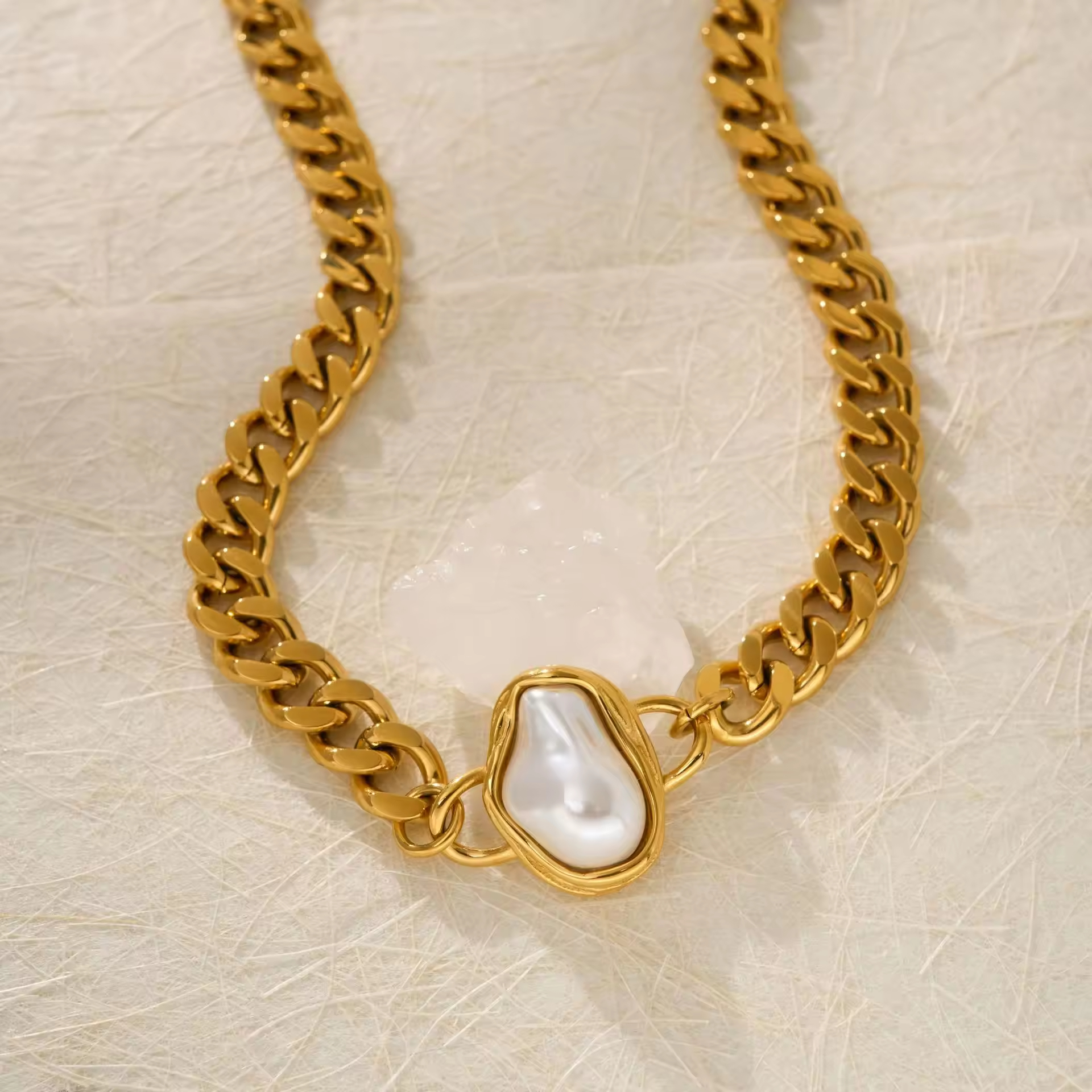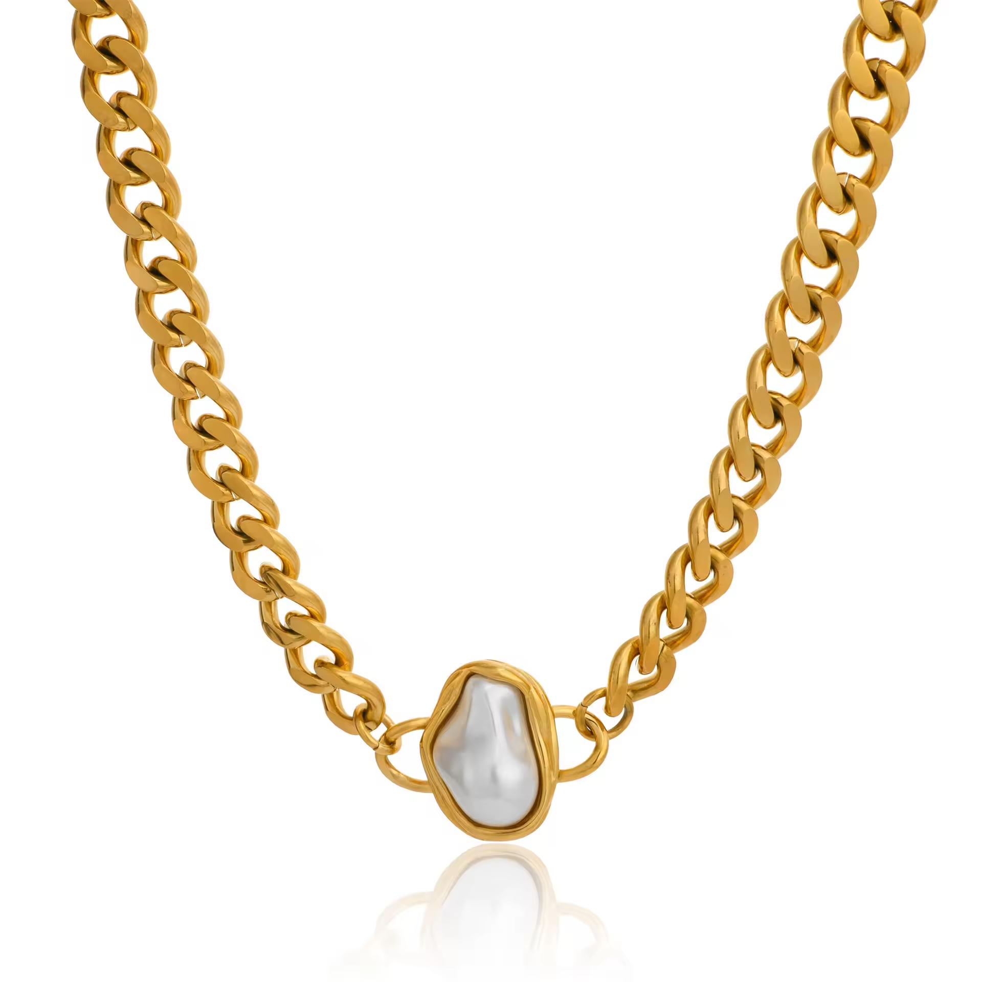 New Arrival Chunky Necklace Waterproof Baroque Pearl Charm Cuban Chains Necklaces for Women